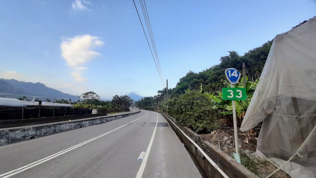 From Wufeng, the rider follows Provincial Highway No. 3 south for 10 kilometers on a gently undulating ride to Caotun. A left turn here gets you onto Provincial Highway No. 14 heading due east into the hills. This is the best place to pick up supplies since there are very few shops over the next 20 kilometers, with the exception of one 7-11 at the 23km marker on the No. 14.