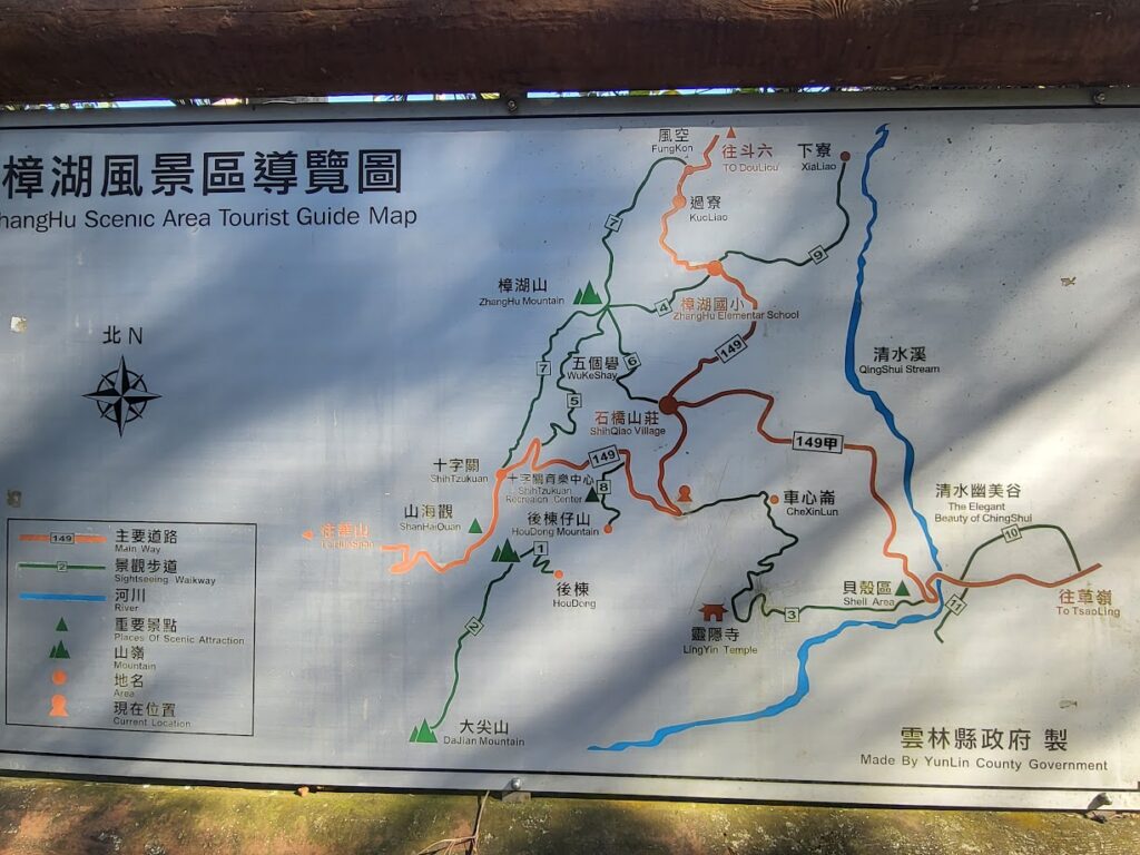 In this post, we focus on Yunlin County in south-central Taiwan. Our starting point is Dounan Township, a primarily agricultural area known especially for coffee and oranges. There is a train station in the center of town, but having a car on this occasion, we started just a few kilometers out on County Rd. No.158A. This is a magical road, and it gets better and better as you ascend.